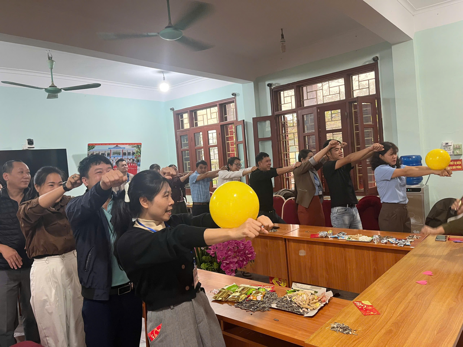 Trong không khí vui tươi, phấn khởi của những ngày đầu xuân năm mới, sáng ngày 23/02/2026 – ngày làm việc đầu tiên sau kỳ nghỉ Tết Nguyên đán Bính Ngọ, tập thể cán bộ, giáo viên, nhân viên Trường Tiểu học Pom Lót đã tổ chức chương trình gặp mặt khai xuân ấm áp, ý nghĩa. Tại buổi gặp mặt, đồng chí Lê Thị Thu – Hiệu trưởng đã gửi lời chúc mừng năm mới, động viên tinh thần đội ngũ, bày tỏ niềm tin vào những kết quả tốt đẹp trong thời gian tới. Nhân dịp đầu năm, những phong bao lì xì may mắn được trao tận tay cán bộ, giáo viên, nhân viên; cùng với đó là các trò chơi tập thể vui nhộn, sôi nổi, góp phần tạo bầu không khí hào hứng, tăng cường sự gắn kết và tiếp thêm năng lượng tích cực cho mọi người trước khi bước vào nhiệm vụ chuyên môn.