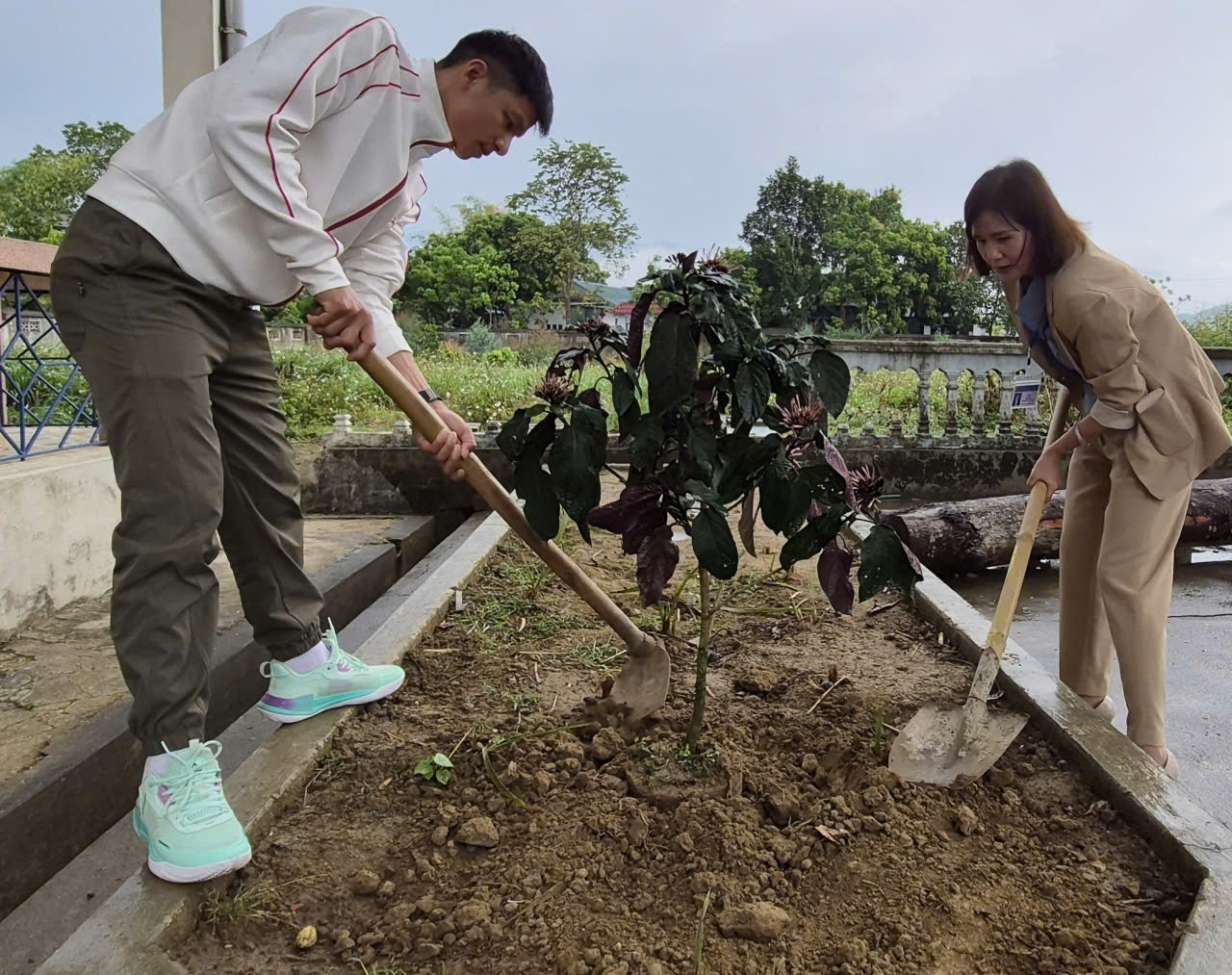 Tiếp nối chuỗi hoạt động đầu xuân, tập thể sư phạm đã tham gia trồng cây xanh trong khuôn viên nhằm hưởng ứng phong trào “Tết trồng cây đời đời nhớ ơn Bác Hồ”. Đây là việc làm thiết thực được duy trì hằng năm, góp phần xây dựng môi trường giáo dục xanh – sạch – đẹp, thân thiện và an toàn. Đồng chí Lê Thị Thu đã trực tiếp cùng các thầy cô tham gia trồng, vun xới, chăm sóc cây xanh. Những nhát cuốc đầu xuân không chỉ thể hiện tinh thần trách nhiệm và sự đồng lòng của tập thể mà còn gửi gắm kỳ vọng về một năm mới thuận lợi, đạt nhiều thành công trong thực hiện nhiệm vụ giáo dục. Hoạt động này không chỉ góp phần cải thiện cảnh quan sư phạm mà còn mang ý nghĩa giáo dục sâu sắc, nâng cao ý thức bảo vệ môi trường, bồi dưỡng tình yêu thiên nhiên cho học sinh. Mỗi cây được gieo trồng hôm nay sẽ lớn lên theo năm tháng, trở thành biểu tượng cho sự phát triển bền vững và những giá trị tốt đẹp mà tập thể nhà trường hướng tới.